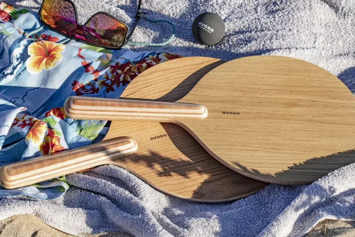 Das in Spanien hergestellte, hochwertige Beachballset ist bekannt für seine Ergonomie und Leichtigkeit. Die Schläger werden in fast allen Fertigungsphasen vollständig aus Holz gefertigt, wodurch umweltfreundliche Qualitätsprodukte entstehen, die Ihre Erwartungen übertreffen. Die Schläger sind leicht zu Pflegen und verfügen über einen Sonnen- und Wasserschutz. Dadurch und aufgrund seines Designs und der Verwendung von nachhaltigen Materialien höchster Qualität, ist der Schläger besonders langlebig.