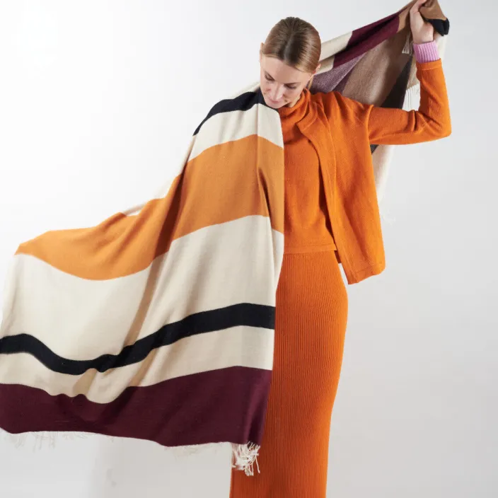 Gewebt aus 100 % Baby-Alpaka und mit luxuriösen Maßen ist das Cape besonders vielseitig und praktisch. Es lässt sich sowohl als Schultertuch, Schal, Wickeltuch oder Plaid tragen und spendet auf natürliche Weise Wärme. Die nordischen parati-Designs sind so puristisch und minimalistisch wie möglich und verströmen gleichzeitig durch die hervorragende Qualität der reinen Alpakawolle und die luxuriöse Farbauswahl eine zeitlose Schönheit. Dank hervorragender Thermoeigenschaften ist das Cape »Alvar« nicht nur ein hochwertiges Accessoire, sondern lässt sich zudem zu jeder Jahreszeit angenehm tragen.