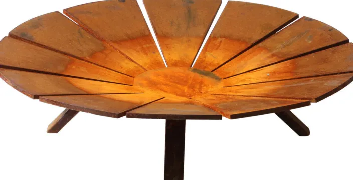 Das großzügige Erscheinungsbild dieser Feuerschale inszeniert Feuer auf einzigartige Weise. Die umlaufend gelaserten Schlitze sorgen für eine optimale Belüftung des Feuers und erlauben ein schönes Licht-Schatten-Spiel. »Solix« ist aus Stahlblech gefertigt und wird in einem ungerosteten Zustand geliefert. Im Laufe der Zeit entsteht jedoch eine individuelle Rostpatina, die sich in jede Umgebung einfügt.