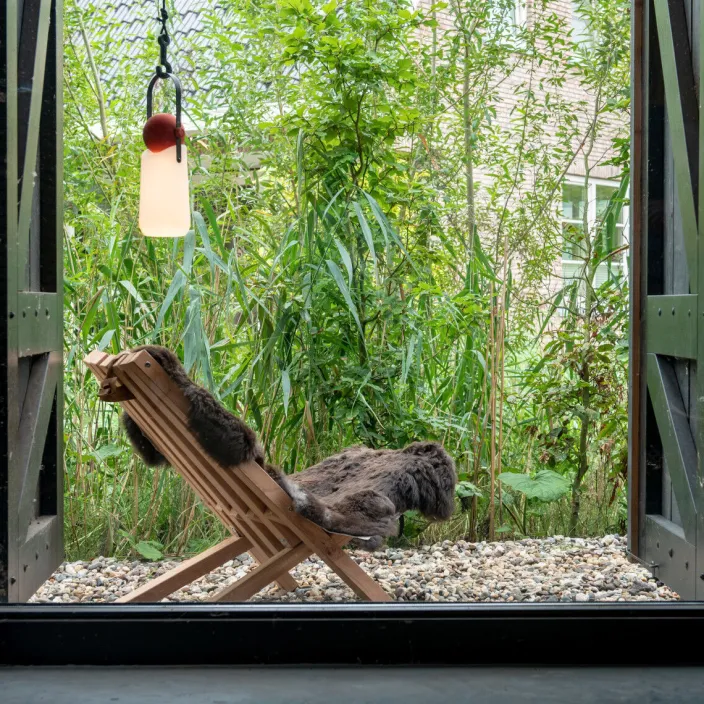 Der Fieldchair ist komplett aus unbehandeltem Lärchenholz aus nachhaltig bewirtschafteten Wäldern, in den Niederlangen, gefertigt. Er ist sehr langlebig und besticht durch sein natürliches Aussehen. Die starken Polyesterverbindungen des Fieldchairs halten die Balken zusammen und die Verbindungen zwischen der unteren Sitzfläche und der Rückenlehne schaffen genug Platz, um den Stuhl nahtlos und kompakt zusammenzufalten. Dank der Textilschlaufe auf der Vorderseite lässt sich der Stuhl einfach transportieren und problemlos aufhängen.