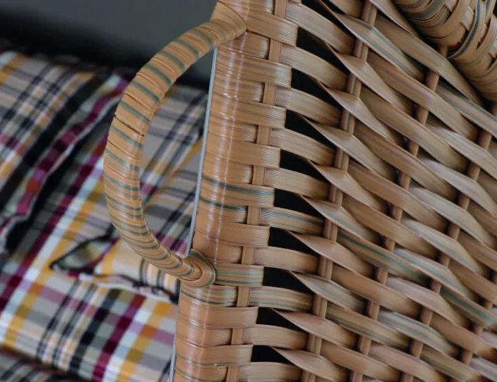 - Material: Kunststoffgeflecht (Polyethylen), Stoff: Polyacry, Gestell: Massivholz (nordische Fichte)