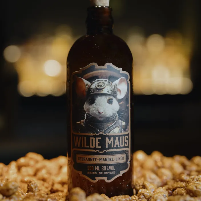 Der erste Likör, der den leckersten Snack des Hamburger Dom stilecht verflüssigt. Wilde Idee und deshalb WILDE MAUS. Mit ganz viel Heimatliebe nach Original-Rezept und aus echten gebrannten Mandeln in der Drilling Destille Hamburg in Bahrenfeld hergestellt.