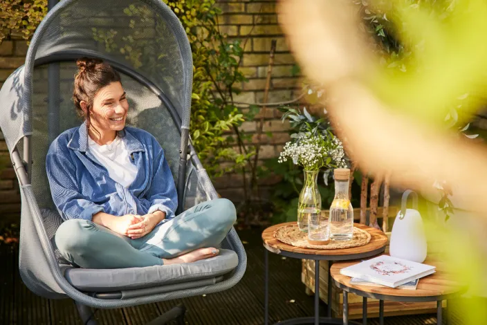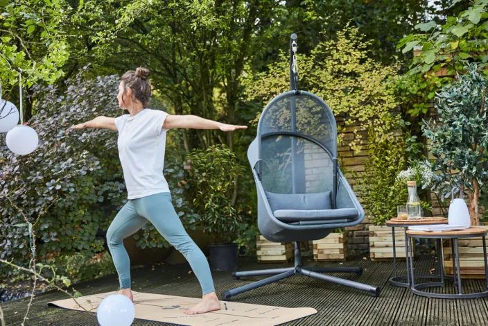 Ihr neuer »Yobaya« Hängesessel von Siena Garden ist aus einem stabilem, langlebigen und pulverbeschichtetem Stahl gefertigt. Der Bezug Ihres gemütlichen Korbes besteht aus einem hochwertigen, leichten und offenporigen Polyester AIR MESH Gewebe, welches die Luft angenehm zirkulieren lässt. Der »Yobaya« ist nicht nur in wenigen Handgriffen aufgebaut, zudem ist er faltbar und lässt sich praktischerweise platzsparend verstauen. Der Hängesessel erstrahlt in den drei Entspannungsfarben Calm Blue, Easy Grey und Cool Black und fügt sich wunderbar in Ihren Garten oder auf dem Balkon ein. Ankommen, zurücklehnen und entspannen – jetzt Ihren neuen Lieblingsplatz der Balance finden.