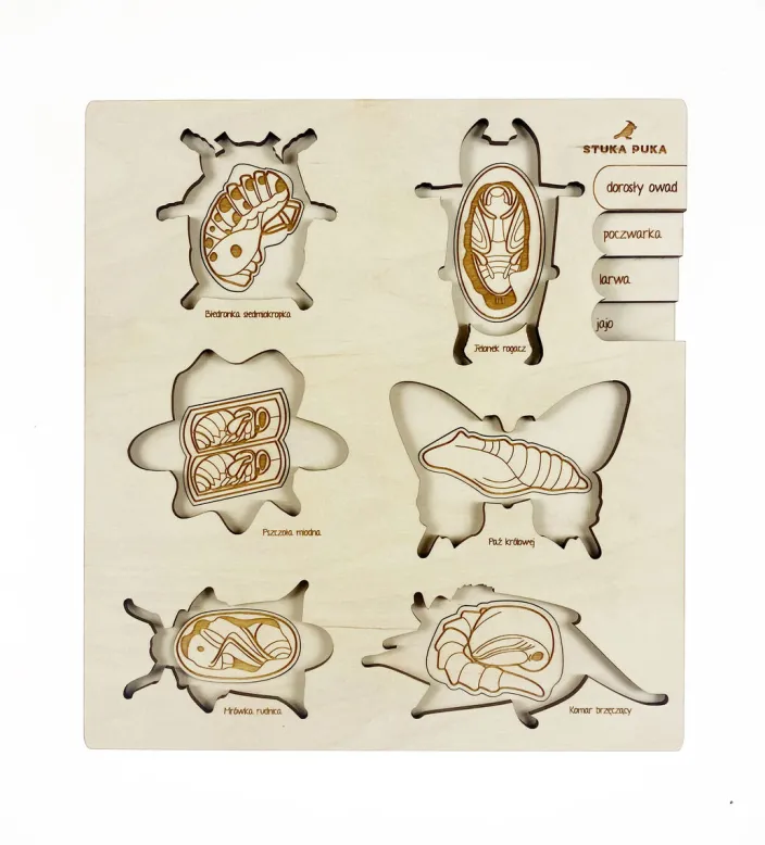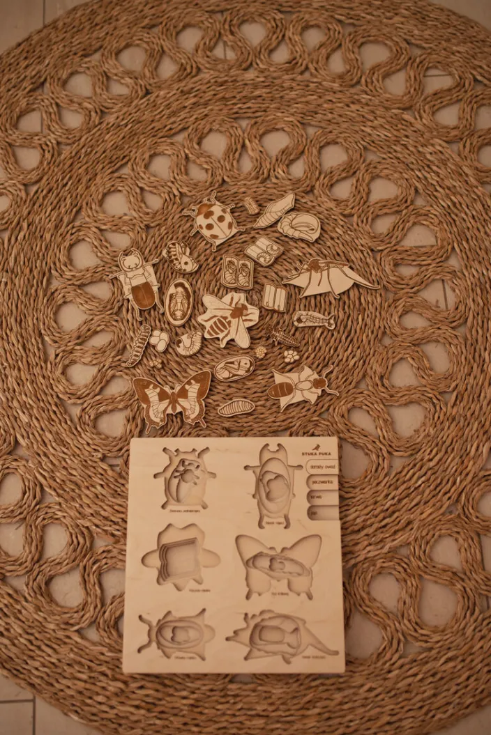 Dieses zauberhafte Puzzle ist nicht nur sehr hübsch: Der Spielspaß hat einen tollen Lerneffekt für Ihre Kinder, die die fantastische Welt der Insekten entdecken können. So können Ihre Kinder beobachten, wie sich Insekten im Laufe ihres Lebens in vier Entwicklungsstadien entwickeln. Abgesehen von dem Verständnis über die umgebene Natur, wird auch die Feinmotorik Ihres Kindes gefördert. Die perfekte Beschäftigungsmöglichkeit für gemeinsame Zeit!