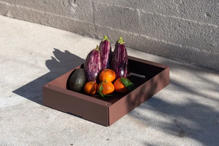 »KGT« von util ist ein äußerst vielseitiges Aufbewahrungssystem aus Aluminium. Inspiriert von traditionellen Kisten, die für den Transport von Obst und Gemüse typisch sind, ist »KGT« eine einfache Behälterbox, die sowohl mit der Hand transportiert werden kann als auch stapelbar ist und als Regal an die Wand gehängt werden kann. Seine schlichten Linien und sein reduziertes Aussehen fügen sich nahtlos in jedes Interieur ein, während das Aluminium ihn wiederverwendbar, langlebig und recycelbar macht. Das KGT ist ein wahrhaft universelles Aufbewahrungsmöbel, das in einer Vielzahl von Anwendungen eingesetzt werden kann. Es lässt sich zu individuellen Aufbewahrungsmöbeln stapeln und arrangieren, als Bürowagen auf Rollen stellen, als Wandregal aufhängen oder als Tablett verwenden und bietet so eine Lösung für jede Art von Wohnraum und Situation. Erhältlich in 3 unterschiedlichen Farben.