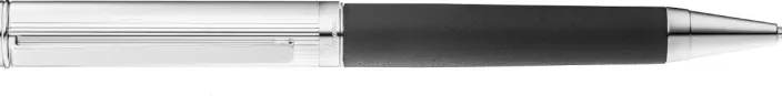 Der Kugelschreiber der Serie »Solon« aus der Manufaktur Waldmann ist aus Sterling-Silber gefertigt und in feinstem schwarzem Rindsleder gekleidet. Die Kappe wird geziert von einem guillochierten Linienmuster.