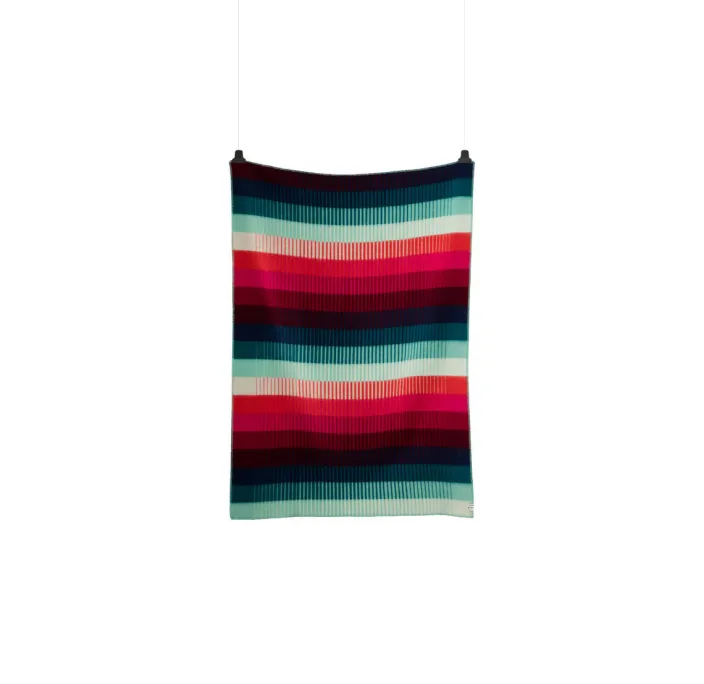 Die Lammwolldecke »ASMUND Grad« besticht durch ihr wunderschönes skandinavisches Design, das klare geometrische Formen mit kräftigen und pastelligen Rose- und Grüntönen spielerisch auflockert. Ob Draußen oder Drinnen – »ASMUND Grad« ist ein wärmender Hingucker für alle Fälle.