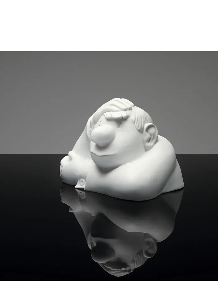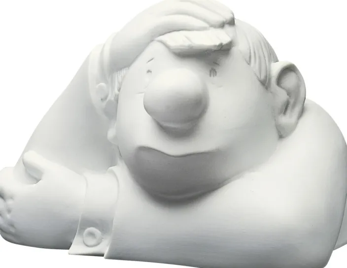 Diese Plastik ist in ihrer angespannten Nachdenklichkeit eine liebevolle Hommage an die gleichnamige Skulptur Auguste Rodins, wird aber von Loriot um die Komponente des stillen Humors bereichert.