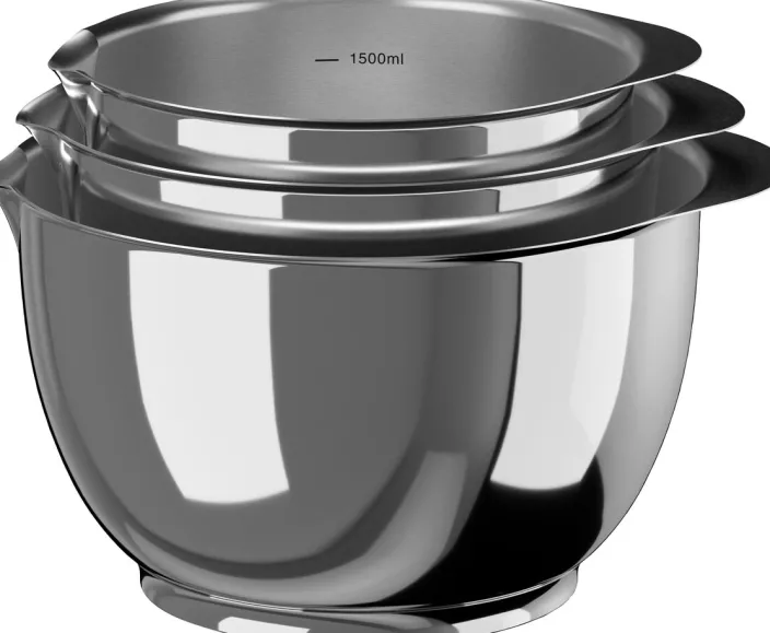 Das Margrethe-Schüssel 3er Set vereint traditionelles skandinavisches Design mit hochwertiger Verarbeitung. Diese Rührschüsseln in den Größen 1,5 + 2 + 3 Liter sind aus langlebigem 18/8 Stahl gefertigt. Mit ihrem eleganten Design, einem satinierten Finish auf der Innenseite und einem glänzenden Äußeren, bringen sie Stil in jede Küche.