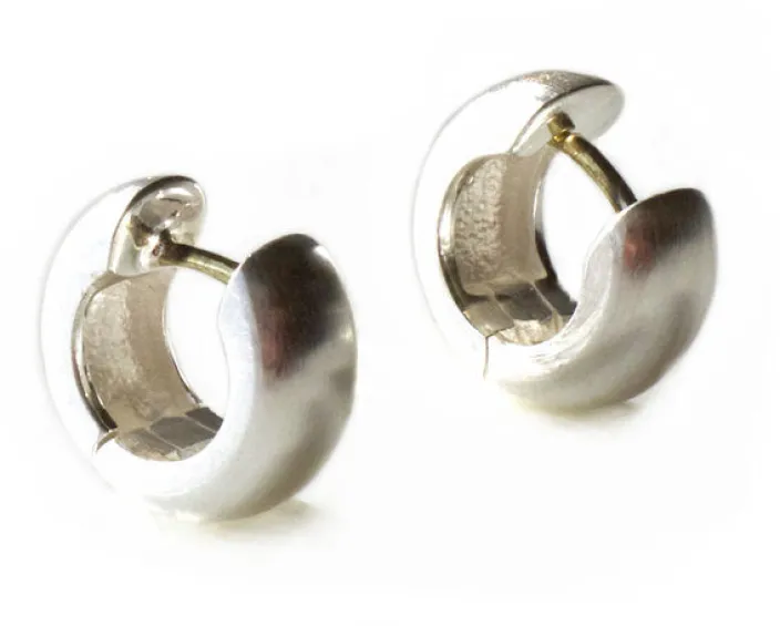 Ohrringe gibt es in vielen verschiedenen Ausführungen, aber die »Creole« ist zweifellos ein zeitloser Klassiker. Ob filigran oder opulent, diese Ohrringe kommen in unterschiedlichsten Formen und Größen vor. Die hier beschriebenen Creolen sind aus gebürstetem 925er Silber gefertigt und passen sich dank ihrer Form perfekt ans Ohrläppchen an. Sie lassen sich einfach anlegen, indem sie aufgeklappt werden. Das Scharnier, das dabei nicht sichtbar ist, befindet sich unten. Der Goldstift aus aus 585er Gold ist ein besonderes Highlight, da die Creolen dadurch haltbarer und sehr gut verträglich sind.
