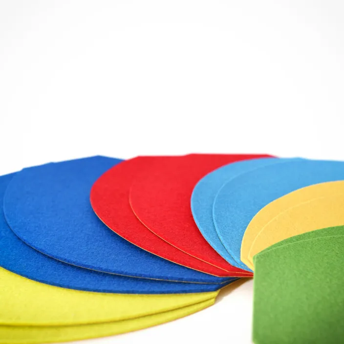 - Wollfilz ist in den Farben Rot und Aquamarin erhältlich