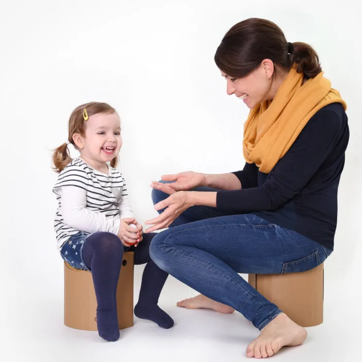 Leicht, ergonomisch und aus lokaler Fertigung: Das ist der Papphocker »Lollo«, auf dem man rittlings sitzen kann! Der Hocker aus ökologischer Pappe kann kinderleicht zusammengefaltet werden, ist dennoch stabil und robust. Dank der Leichtigkeit der Materialien können auch Kinder den Hocker ganz einfach tragen. Die Sitzposition, die einer tiefen Hocke ähnelt, ist die ursprünglichste Ruheposition des Menschen und wird von Kindern und Naturvölkern instinktiv eingenommen – der Papphocker »Lollo« lädt dementsprechend nicht nur zum Entspannen und Ausruhen ein, er ist auch sehr entlastend für den Rücken. Ebenfalls mit dabei ist ein abnehmbarer Einhornkopf mit Zügeln die den Papphocker im Handumdrehen von einer praktischen Sitzgelegenheit zum fantasieanregenden Spielzeug umfunktioniert.