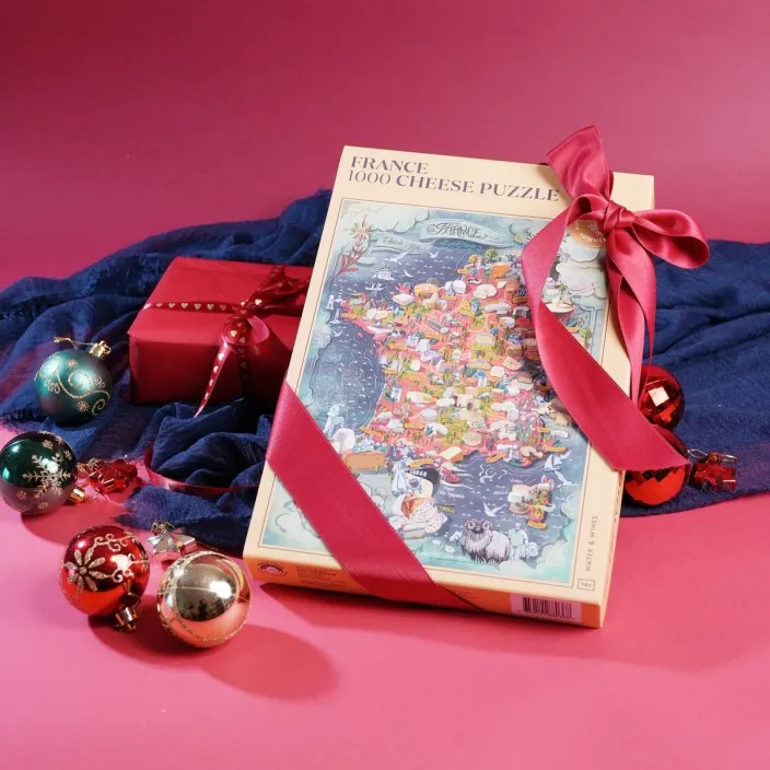 Stürzen Sie sich in das faszinierende Abenteuer der französischen Käsewelt mit unserem Puzzle „French Cheese“ von Water & Wines. Mit über 80 verschiedenen Käsesorten entführt Sie dieses Puzzle in die vielfältigen Käseregionen Frankreichs, von den bekannten Klassikern bis hin zu gut gehüteten Geheimtipps.