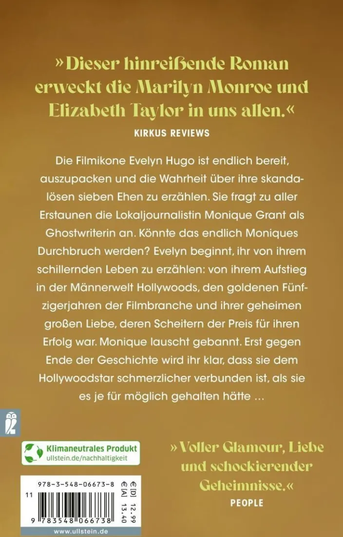 Die Filmikone Evelyn Hugo ist endlich bereit, auszupacken und die Wahrheit über ihre skandalösen sieben Ehen zu erzählen. Sie fragt zu aller Erstaunen die Lokaljournalistin Monique Grant als Ghostwriterin an. Könnte das endlich Moniques Durchbruch werden? Evelyn beginnt, ihr von ihrem schillernden Leben zu erzählen: von ihrem Aufstieg in der Männerwelt Hollywoods, den goldenen Fünfzigerjahren der Filmbranche und ihrer geheimen großen Liebe, deren Scheitern der Preis für ihren Erfolg war. Monique lauscht gebannt. Erst gegen Ende der Geschichte wird ihr klar, dass sie dem Hollywoodstar schmerzlicher verbunden ist, als sie es je für möglich gehalten hätte.
