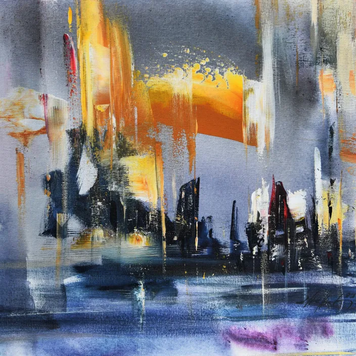 Entdecken Sie unsere Bilderkollektion auf Aluminiumplatte! Jedes der vier Bilder – »Sequitur« (2023), »Impetu« (2021), »Goldregen« (2022) und »Lichtung« (2021) – ist ein hochwertiges Kunstwerk, das Eleganz und Stil in Ihr Zuhause bringt.