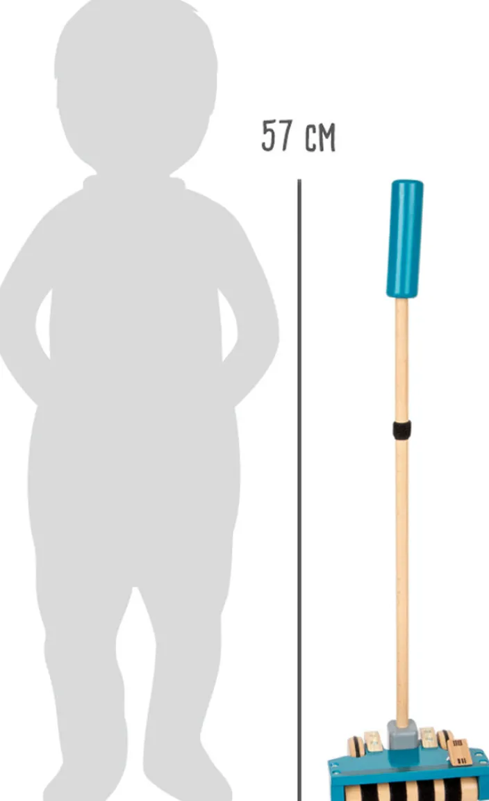 Der vielseitige »Schiebespielzeug Staubsauger« aus hochwertigem Holz kombiniert Spielspaß und Lernförderung in einem. Durch seine Funktionen als Schiebe- und Rollenspielzeug regt er die kindliche Fantasie an und dient gleichzeitig als unterstützende Gehhilfe für die ersten Schritte. Das authentische Spielerlebnis wird durch Flauschstreifen verstärkt, indem Schmutz in Form von Klettpunkten „aufgesaugt“ werden. Die mit Klettverschluss versehene Auffangtasche bewahrt die bunten Klettpunkte sicher auf. Die gummierten Räder gewährleisten geräuschloses Rollen und verhindern ein ungewolltes Wegrutschen. Nach dem Spielen lässt sich das Spielzeuggerät platzsparend aufbewahren. Die farbigen Klettpunkte sind gut sichtbar und bieten auf verschiedenen Fußböden ein realistisches Spielerlebnis. Dieser Spielzeug-Staubsauger macht Ihre kleinen Liebsten startklar für abenteuerliche und spaßige Hausputzaktionen.