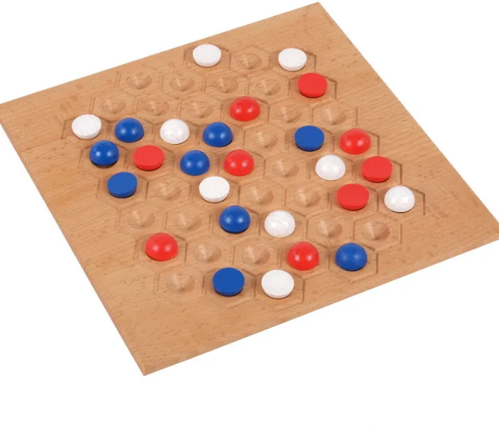 - Spielsteine aus Holz, farbig lackiert in 3 Farben