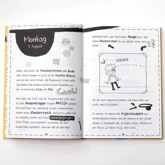 - Kurze Kapitel, wenig Text, viele Comics und Kritzeleien