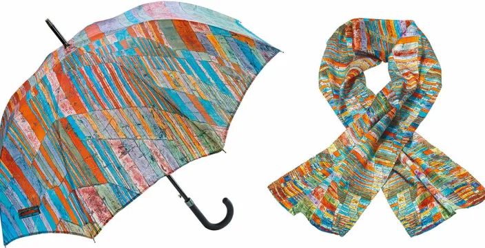 Lassen Sie die Regenwolken beim Öffnen dieses Schirmes verschwinden und breiten Sie über sich die »Hauptweg und Nebenwege« nach Paul Klee aus – halten Sie sich zusätzlich mit dem dazu passenden Schal warm.