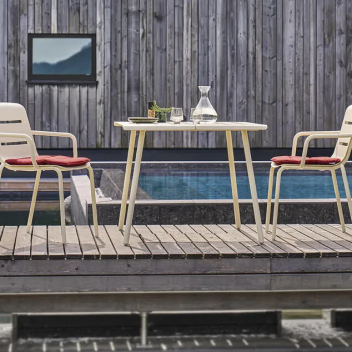 Ist das ein Café an der Côte d‘Azur oder der heimische Garten? Die Frage stellt sich, sobald Sie diese neue Gartenmöbel-Kollektion gesehen haben. Der Aluminium-Möbelserie gelingt der Spagat zwischen mondänem Flair und heimeliger Behaglichkeit. Unkompliziert und formschön.