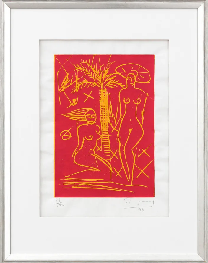 Mit souveränem Strich skizziert Szczesny zwei exotische Schönheiten unter einer Palme.