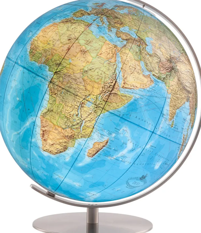 Seit über 70 Jahren steht der DUO für das Zwei-in-Einem-Prinzip: Unbeleuchtet zeigt er übersichtlich die Länder, und beleuchtet offenbart er detaillierte Topografie und dreidimensional wirkende Erhebungen. Der hochwertige Druck im 120er Feinraster-Verfahren sorgt für kristallklare Schriften und scharfe Details, einschließlich Bahn- und Schifffahrtsrouten sowie kalter und warmer Meeresströmungen. Das Ergebnis: hervorragende Lesbarkeit und Farbtreue.