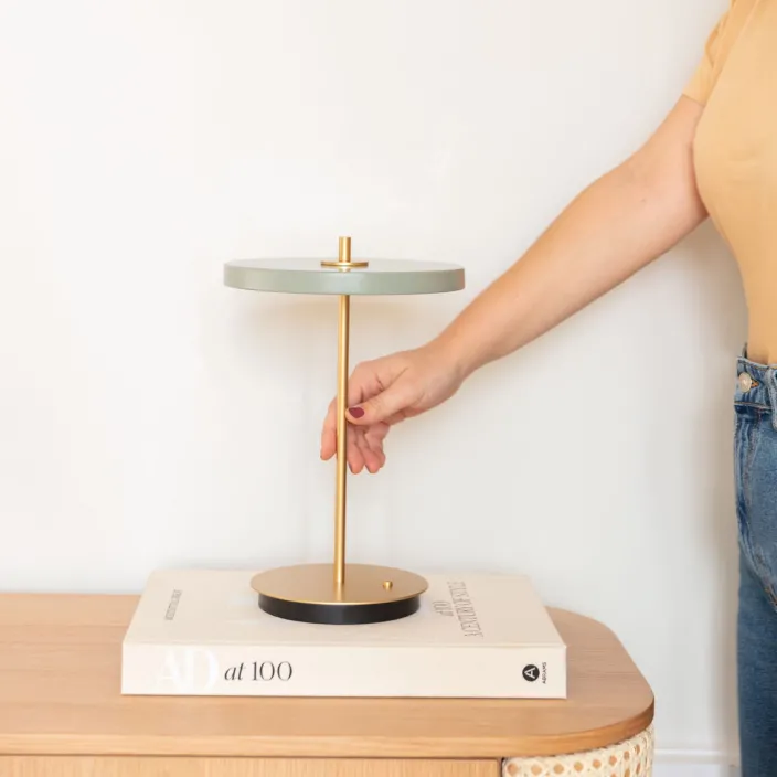 Die »Asteria Move« von Umage ist eine tragbare Tischleuchte, die frei von jeglichen Kabeln ist. Das verleiht dem Design einen zusätzlichen Fokus und macht es einfach, sie zu bewegen, damit das Licht dort ist, wo es gebraucht wird. Durch den eingebauten weißen Diffusor und das LED-Licht sorgt sie für ein blendfreies Leuchten. Das schlanke Design aus Aluminium und der Messingstiel, der sich durch die Leuchte zieht, verleihen ihr einen strengen und raffinierten Ausdruck und machen sie zu einer zeitlosen Leuchte, an der Sie noch viele Jahre Freude haben werden.