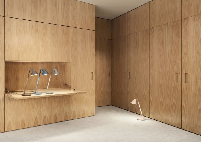 Diese flexible LED-Leuchte hat ein diffuses nach unten gerichtetes und somit blendfreies Licht. Für seine geringe Größe bietet die Leuchte eine breite Lichtverteilung und die weiße lackierte Innenseite des Schirms hilft bei der Reflexion. Mit dem stufenlosen Dimmer (Druckknopf am Leuchtenkopf) kann das Licht auf eine Leuchtkraft zwischen 15% – 100% gebracht werden. Die Öffnung an der Rückseite des Leuchtenkopfes strahlt ein sanftes Licht aus und beleuchtet die Oberseite des Arms und schafft ein zusätzliches Ambiente. Der Arm hat einen stationären Winkel von 15° und kann um 342° um die Basis gedreht werden, während der Kopf geneigt und gedreht werden kann. Die NJP besitzt einen Timer zum Ausschalten nach entweder vier oder acht Stunden.