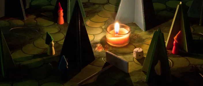 In dem zauberhaften Brettspiel von Kraul spielen Kinder ab 5 Jahren mit den Zwergen verstecken im Schatten des Märchenwalds. Die Kerze, die in das Spiel fest integriert ist, zieht sowohl kleine als auch große Spieler*innen mit ihrer märchenhafte Atmosphäre in den Bann.