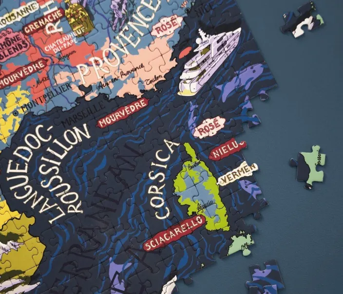 Navigieren Sie mit diesem wunderschönen handgezeichneten Puzzle durch die Weinreben Frankreichs, eine Region nach der anderen. Entdecken Sie die Trauben und Sternbezeichnungen der ikonischen Regionen, die Frankreich zu einem der berühmtesten Weinländer der Welt gemacht haben. Die von Sommeliers kuratierte Puzzlebox enthält Traubenprofile, die die unterschiedlichen Aromen, die wichtigsten Eigenschaften und Tipps für die Kombination mit Speisen jeder Region beschreiben.