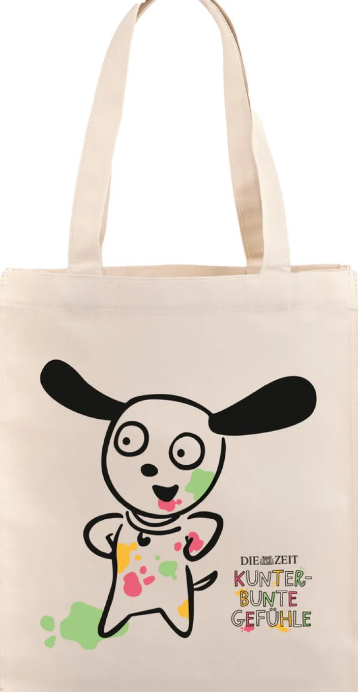Eine lustig bedruckte und stabile Büchertasche bietet dazu noch extra viel Platz für alle Bücher.
