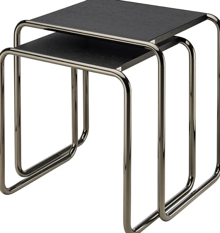 Anlässlich des 100-jährigen Bauhaus-Jubiläums veröffentlicht die Traditionsmanufaktur Thonet exklusiv für DIE ZEIT die Sonderedition »B9a/b« in einmaliger Farbgebung. Rauchglanz-verchromtes Stahlrohr und eine Ablagefläche in offenporig schwarz gebeiztem Eichenholz verleihen den auf nur 100 Exemplare limitierten Satztischen ein äußerst edles Erscheinungsbild. Ganz im Sinne des Bauhaus-Designs stehen die Möbel, entworfen von dem berühmten Architekten Marcel Breuer, für eine konsequent puristische Ästhetik. Ursprünglich für die Kantine des Dessauer Bauhaus-Gebäudes entworfen, überzeugen sie bis heute mit ihrer reduzierten Gestaltung und funktionalen Schlichtheit.