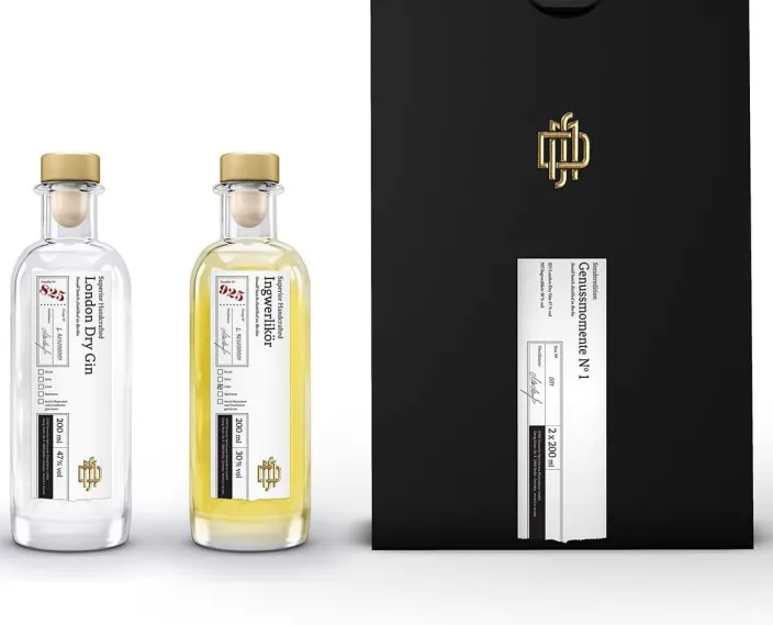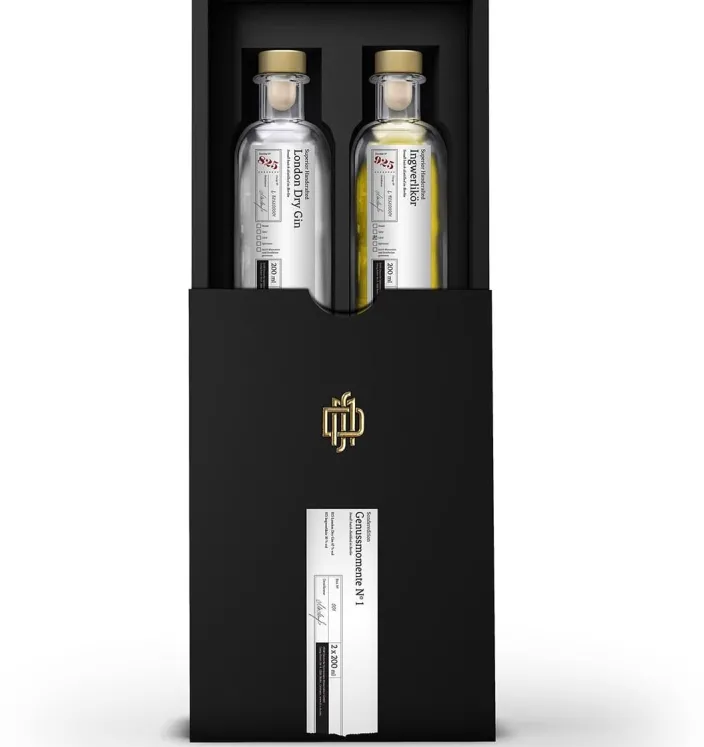 Besondere Genussmomente zum Verschenken – zwei der beliebtesten Produkte der Deutschen Spirituosen Manufaktur »London Dry Gin« und »Ingwerlikör« in einer wunderschönen und edlen schwarzen Schiebeschachtel, die fast zu schön ist, um sie noch mit Geschenkpapier zu umwickeln. Die außergewöhnlichen Destillate der DSM schaffen Genussmomente, die sich für immer in das Geruchs- und Geschmacksgedächtnis einprägen. Ein wunderbares Geschenk für sich und Ihre Liebsten.