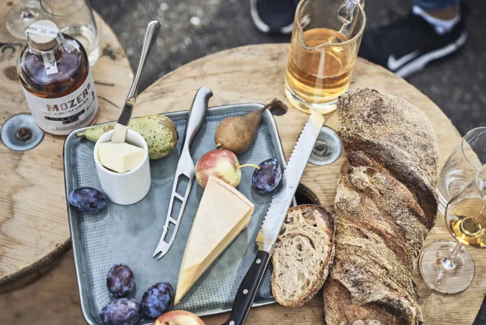 Über Mozers Spirit: Seit 1893 ist der alte Traditionshof in Familienbesitz und immer schon wurde dort Obstler gebrannt. Die Liköre und Schnäpse aus der Hands-on-Reihe tragen diesen Namen nicht ohne Grund, denn die Herstellung bedarf vieler Handgriffe, von der Pflege am Baum über die Ernte der besten Früchte und Beeren bis zum traditionellen Prozess an der Brennblase und dem Abfüllen in die Flaschen mit den schönen Etiketten.