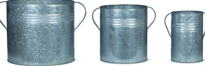 Das aus verzinktem Stahl gefertigte Set ist absolut wetterfest und hat keine Abflusslöcher, so dass es sowohl im Innen- als auch im Außenbereich verwendet werden kann. Es bietet einer Reihe von Lieblingspflanzen – frischen Blumen, Gemüse und Kräutern ein neues Zuhause. Mit ihrem geriffelten Design und den dekorativen Griffen passen die drei Pflanzgefäße perfekt in den Schuppen oder das Gewächshaus. Das klassische Design ist originalen Bauernkannen nachempfunden und bringt einen Hauch von Vintage in Ihr Zuhause.