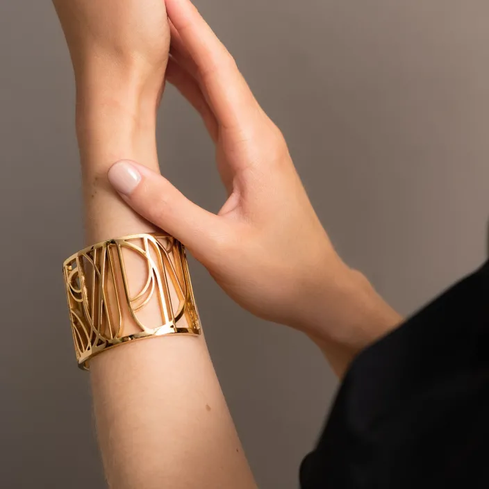 Das Armband »DEW« wurde von dem schwedischen Designstudio Objecthood entworfen. Inspiriert von floralen Mustern aus dem Art Déco des 20. Jahrhunderts, einem Stil, der sich durch Eleganz und Exklusivität auszeichnet.
