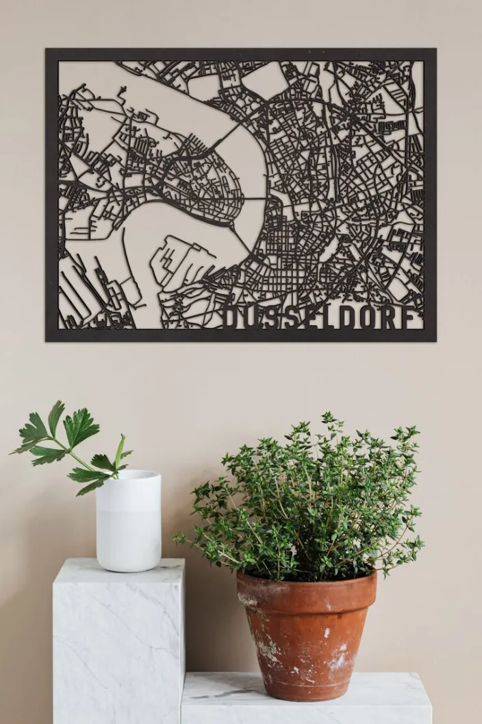 Jede unserer 10 »City Maps« (aus MDF) wird auf Basis geografischer Daten erstellt und präzise mit Lasertechnologie ausgegeschnitten. Sie stellen das Straßennetz der jeweiligen Stadt dar und bringen den einzigartigen Fingerabdruck Ihrer Lieblingsstadt zu Ihnen nach Hause! Entdecken Sie »hier« auch die weiteren City Maps Ihrer Stadt!