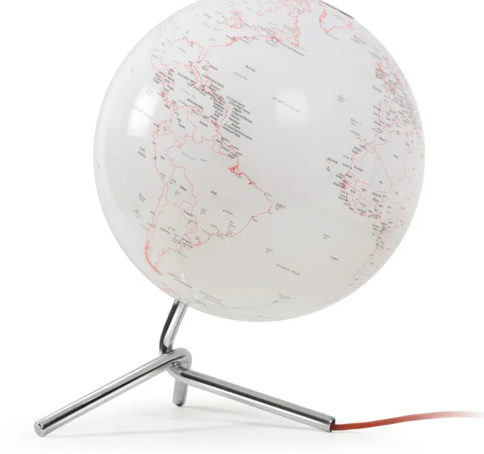 Mit dem Design des Gestells ist dem dänischen Team von Tools durch eine klare Formensprache und die Leichtigkeit der Proportionen eine wahrhafte Neuinterpretation des Themas Globus gelungen. Weg von der prototypischen Ansicht des Globus, bei dem die Kugel in einen Meridian eingehängt wird, zeichnet sich das Modell durch ein innovatives Design des Gestells aus. Es handelt sich um einen außerordentlich eleganten Einrichtungsgegenstand, der das Wohnambiente mit Stil und Einzigartigkeit bereichert. Der Holzfuß aus Eiche verleiht dem Globus eine Identität, die ihn in jeder Hinsicht als Einrichtungsgegenstand von hochwertigem Design kennzeichnet.