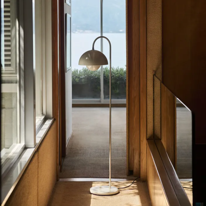 Die Flowerpot VP12 Stehleuchte von &Tradition A/S ist eine modern gestaltete Leuchte, die in enger Zusammenarbeit zwischen dem Unternehmen und der Familie Panton entwickelt wurde.