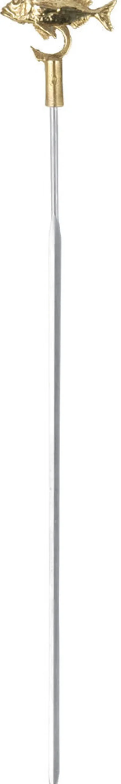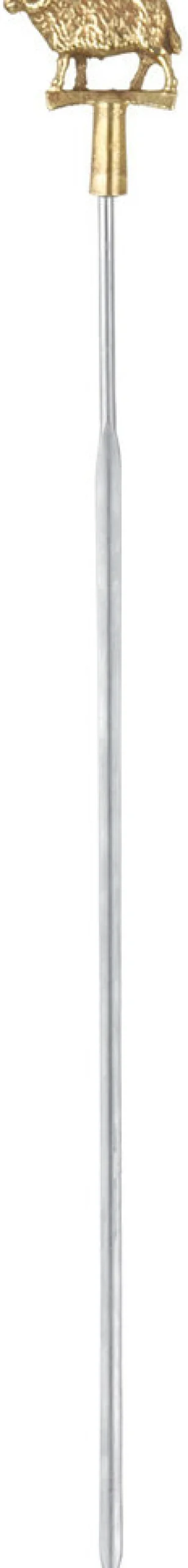 Edles und einzigartiges Grillspieße-Set aus Edelstahl mit vier Tier-Motiv aus massivem Messing. Das Set umfasst je einen Spieß mit Hahn, Fisch, Widder und Rind-Motiv. Die Spieße sind 28 cm lang und haben eine scharfe Spitze mit einem rautenförmigen Querschnitt, was das Auffädeln von Grillgut erleichtert und verhindert, dass es sich beim Grillen dreht. Die Messingfiguren sind fest und dauerhaft mit den Spießen verpresst. Das aufwändige Verfahren zur Fertigung der Motive in verlorenen Sandformen macht jedes Set einzigartig. Die Grillspieße werden handwerklich in Solingen hergestellt und sind in verschiedenen Motiven erhältlich. Sie sind hitzefest und sollten per Hand gereinigt werden.
