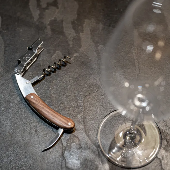 Das Kellnermesser besticht nicht nur durch seine Funktionalität, sondern auch durch sein ansprechendes Design. Dank des ergonomischen Griffs aus Walnussholz liegt es angenehm in der Hand und ermöglicht eine einfache Bedienung.