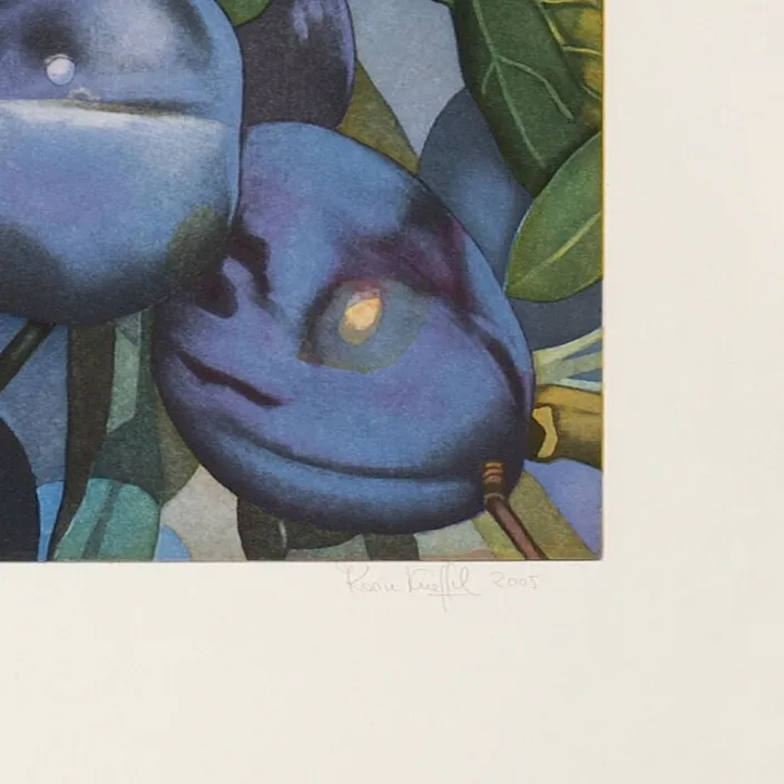 Karin Kneffel gehört zu den bedeutendsten zeitgenössischen Künstlerinnen Deutschlands, deren Werk eine außergewöhnliche Präzision und emotionale Tiefe auszeichnet. Die Pflaume ist in der Kunstgeschichte ein oft gewähltes Symbol – sie steht nicht nur für das Alltägliche, sondern auch für das Vergängliche und das Sinnliche. Karin Kneffel geht jedoch noch einen Schritt weiter und verleiht der Frucht in ihren Radierungen eine nahezu magische Präsenz. In ihren Arbeiten wird die Pflaume nicht bloß als Frucht dargestellt, sondern als ein Objekt von nahezu metaphysischer Bedeutung. Ihre Darstellungen sind von einer außergewöhnlichen Detailtreue und einer faszinierenden Tiefenwirkung geprägt. Limitiert auf 90 Kunstwerke.