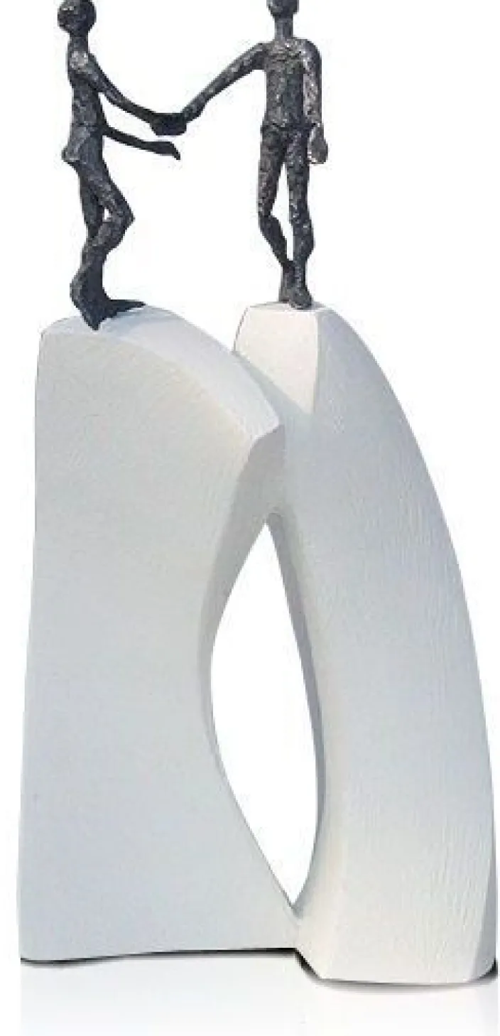 Die helfende Hand eines Freundes ist durch nichts zu ersetzen! Ein ideales »Dankeschön«-Geschenk! Ob im Büro oder Zuhause: diese Botschafter des Erfolges motivieren bis in die Haarspitzen! Jede Skulptur besticht durch ihre Dynamik, den tiefen Kontrast zwischen dunkel patinierter Bronze und hellem Steinguss-Sockel. Kleinplastik aus feiner Bronze, von Hand patiniert und gewachst.