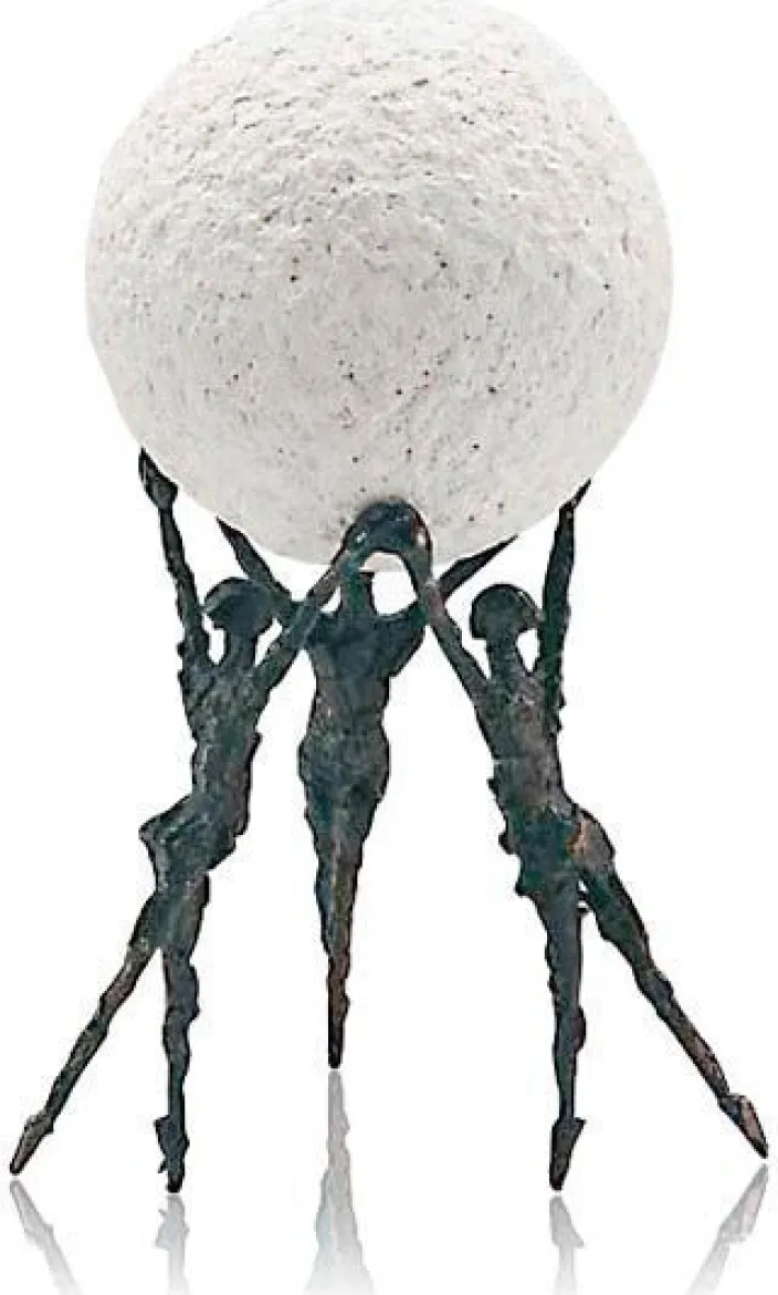 Im Team wächst der Einzelne über sich hinaus. Im Einklang werden große Dinge spielend leicht bewegt… Ob im Büro oder Zuhause: diese Botschafter des Erfolges motivieren bis in die Haarspitzen! Jede Skulptur besticht durch ihre Dynamik, den tiefen Kontrast zwischen dunkel patinierter Bronze und hellem Steinguss-Sockel. Kleinplastik aus feiner Bronze, von Hand patiniert und gewachst. Höhe 19 cm. Lieferung mit Expertise.