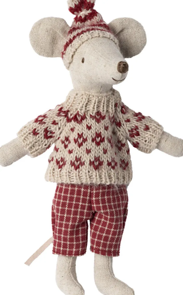 Diese winterfeste Maileg Maus ist bereit für aufregende Stunden auf der Piste! In ihrem warmen Outfit, komplett mit einer winzigen Strickmütze, die die Ohren schützt, sorgt sie für grenzenlosen Spaß während der kalten Wintertage. Das Spielset enthält neben der kuscheligen Maus auch ein Paar Ski und Stöcke, perfekt für winterliche Abenteuer. Ein liebevoll gestaltetes Set, das Kinderherzen höher schlagen lässt und die Fantasie beflügelt.