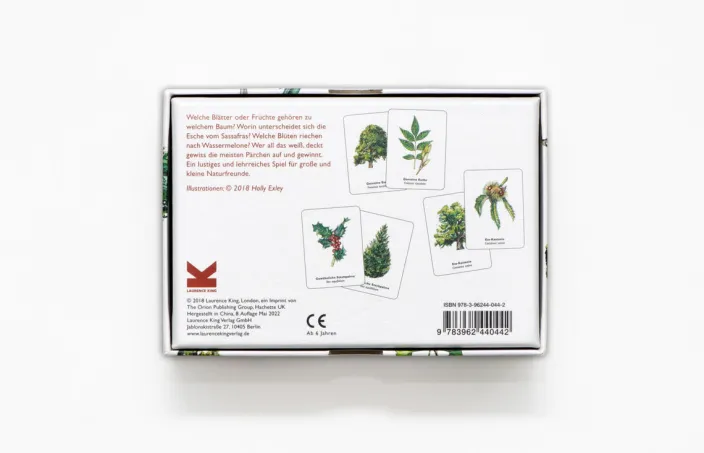»Bäume und ihre Blätter« ist ein Memo, das jede*n in Nullkommanichts zum*r echten Baumexpert*in macht! Die Bild-Paare bestehen aus den Blättern und dem Baum, von dem sie stammen. Wer die meisten Paare findet gewinnt! Mit wunderschönen Illustrationen bekannter wie außergewöhnlicher Bäume aus der ganzen Welt, ist dieses lustige und lehrreiche Spiel das ideale Geschenk für alle Naturliebhaber*innen. Das beiliegende Booklet enthält zudem interessante Fakten zu den dargestellten Bäumen und wurde vom Leiter des Arboretum der Royal Botanic Gardens in Kew London geschrieben.