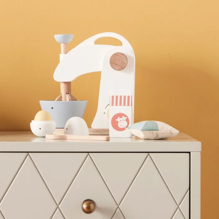 Dieses liebevoll gestaltete und robust verarbeitete Mixer-Set darf in keiner Kinderküche fehlen. Zutaten wie Zucker, Ei, Milch und Mehl sind gleich mit dabei. So ist das Mixer-Set direkt einsetzbar und ermöglicht es den backbegeisterten Kleinen sich kreativ auszuleben. Das Mixerset ergänzt sich perfekt mit anderen Kinder-Küchenprodukten von Kids Concept, wie zum Beispiel der Spielküche.