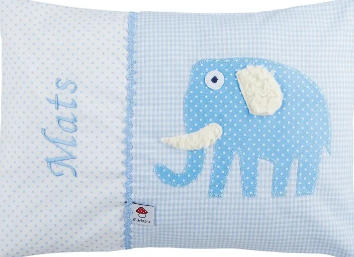 Die individualisierbaren Kissen (35 x 25 cm B x H) von Glückspilz werden aus 100 % Baumwolle in Deutschland hergestellt. Die individuelle Bestickung (max. 10 Zeichen) des Wunschnamens wird per Hand aufgetragen und sorgt mit der jeweils passenden Zackenlitze dafür, dass jedes Kissen zum Unikat wird. Das aufwendig in Handarbeit hergestellte Namenskissen »Fuchs« ist für Jungen und Mädchen gleichermaßen geeignet und ein wunderschönes Geschenk zur Geburt, Taufe oder zum Geburtstag.