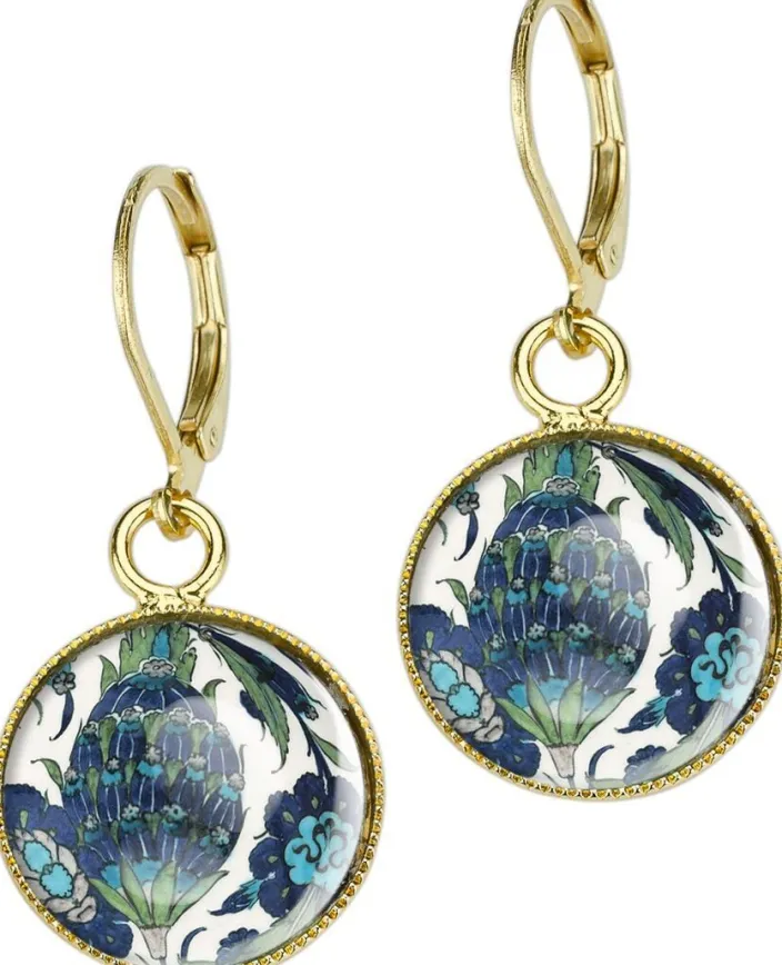 Diese aus feinem Muranoglas und 24 Karat vergoldetem Messing gefertigten Ohrhänger wurden nach schmückenden Motiven berühmter Iznik-Keramiken gestaltet.