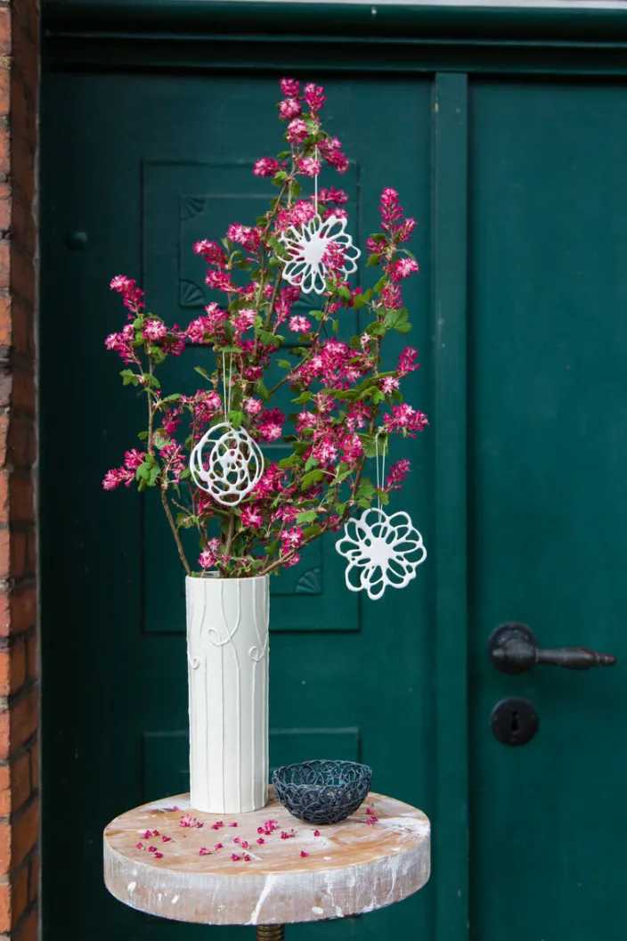 Das zart verarbeitete Material verleiht den filigranen Anhängern eine besondere und wertvolle Erscheinung. Ihre Leichtigkeit lässt sie an jedem Zweig, ob alleinstehend oder am Christbaum, mit Leichtigkeit zu einem schlichten und doch eleganten Schmuckstück werden. Mühevoll in Handfertigung hergestellt, ist jedes Exemplar ein Unikat, das seinesgleichen sucht, weshalb die Anhänger von ihrer Erscheinung etwas von den Abbildungen abweichen können.